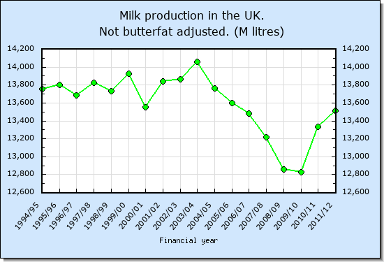 - UK production and consumption of milk products from 1973 to 2008