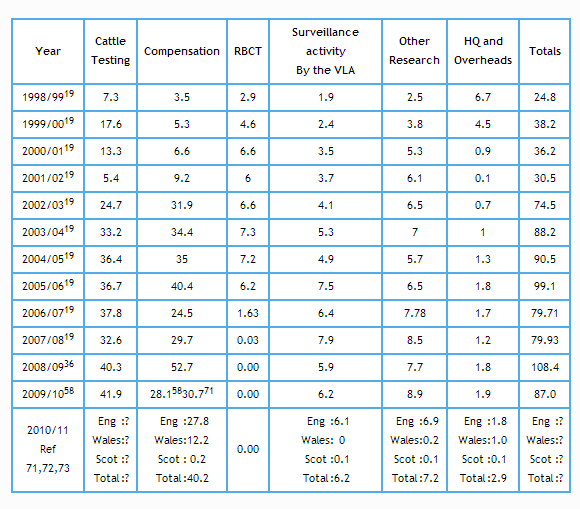 - In 2009/10 the tax payer paid £87 million to address bovine TB in Great Britain.