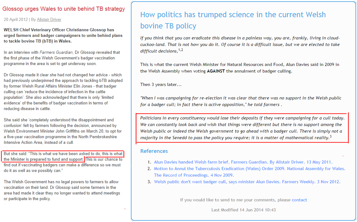 - DEFRA consultation Sept 2010: Annex B - Scientific evidence on culling