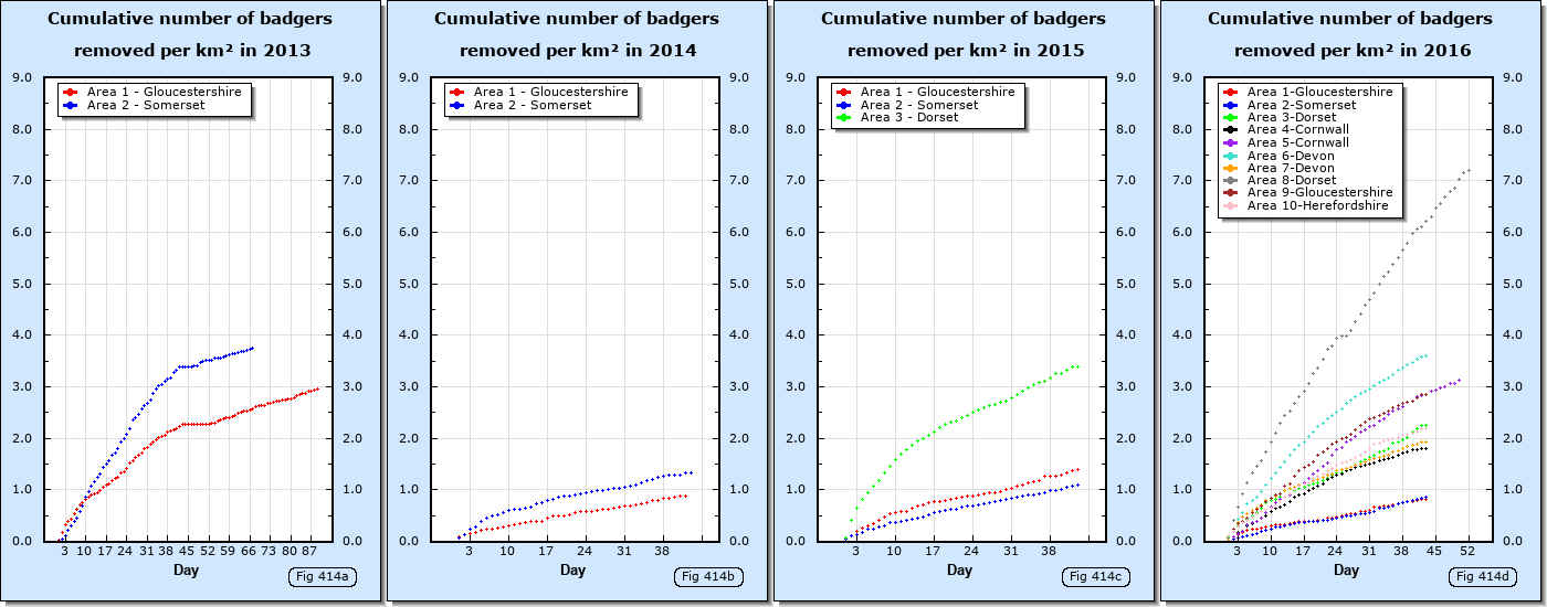 In terms of the number of badgers removed per square kilometre, cull rates in these culls are comparable to those in the RBCT.