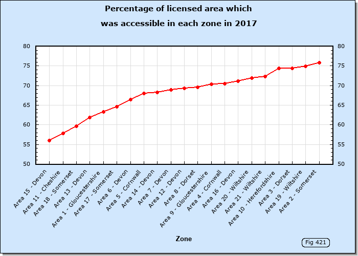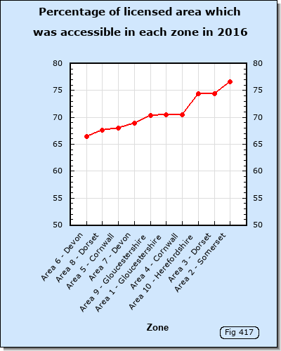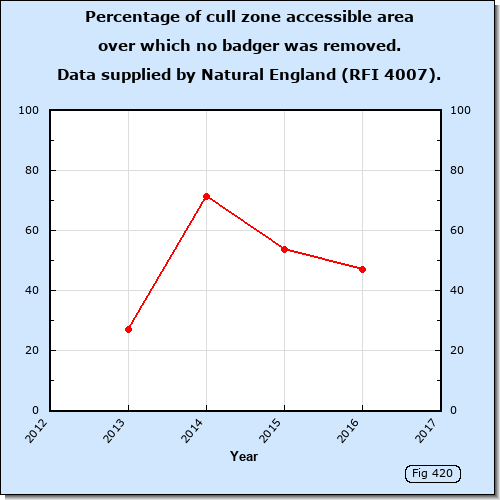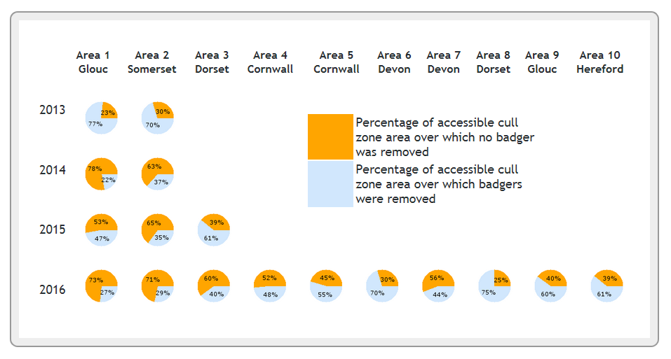 was half (actually 49.5%) of the accessible area across the badger cull zones. In Gloucestershire this percentage exceeded 75% in 2014 and