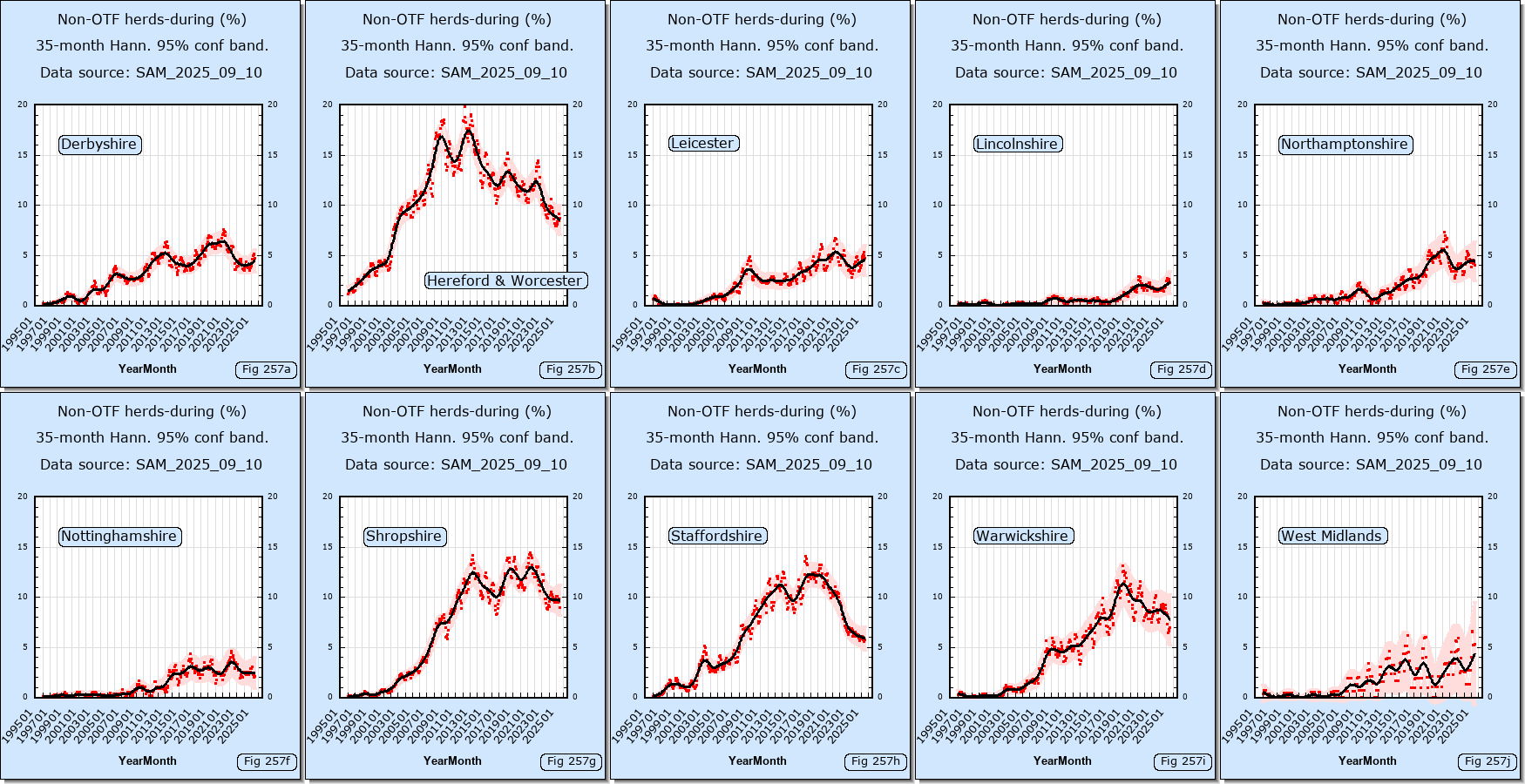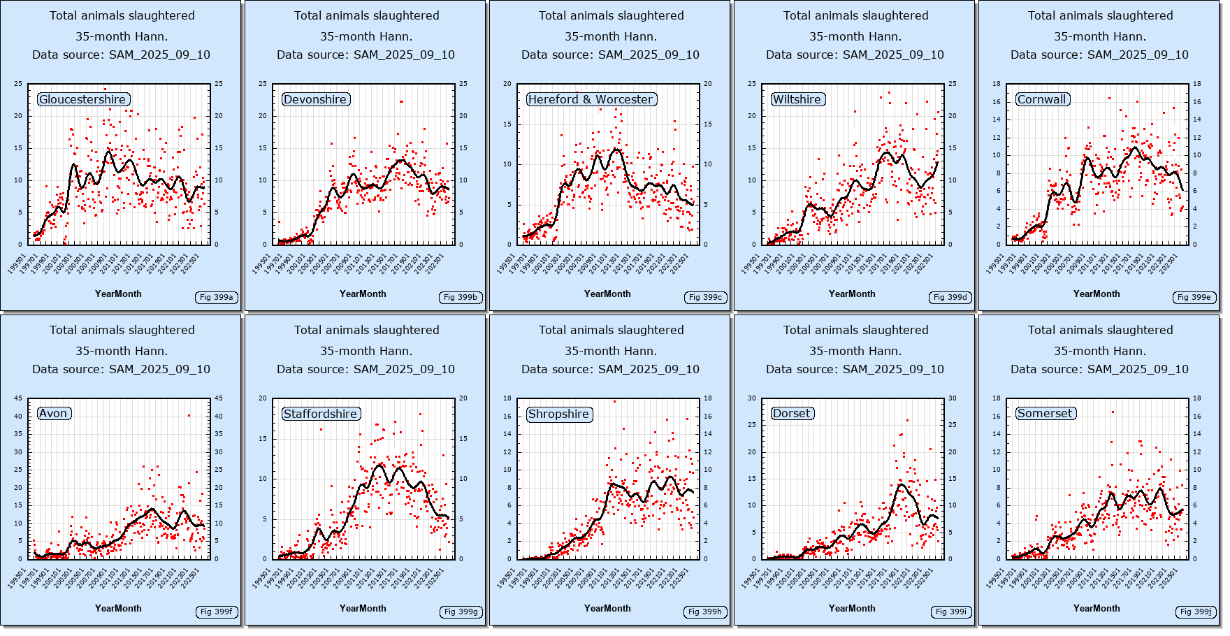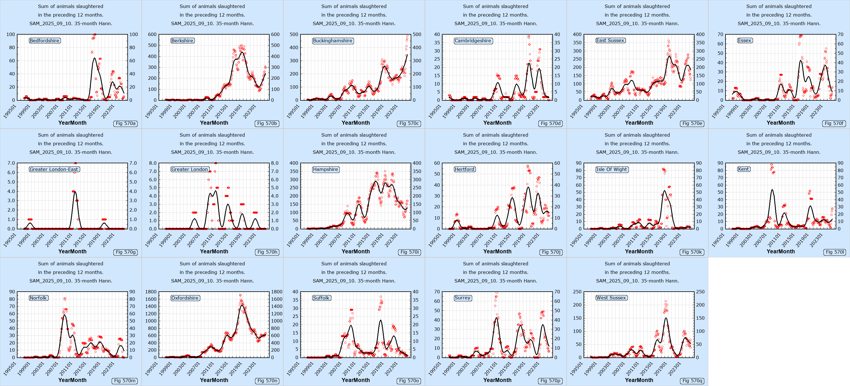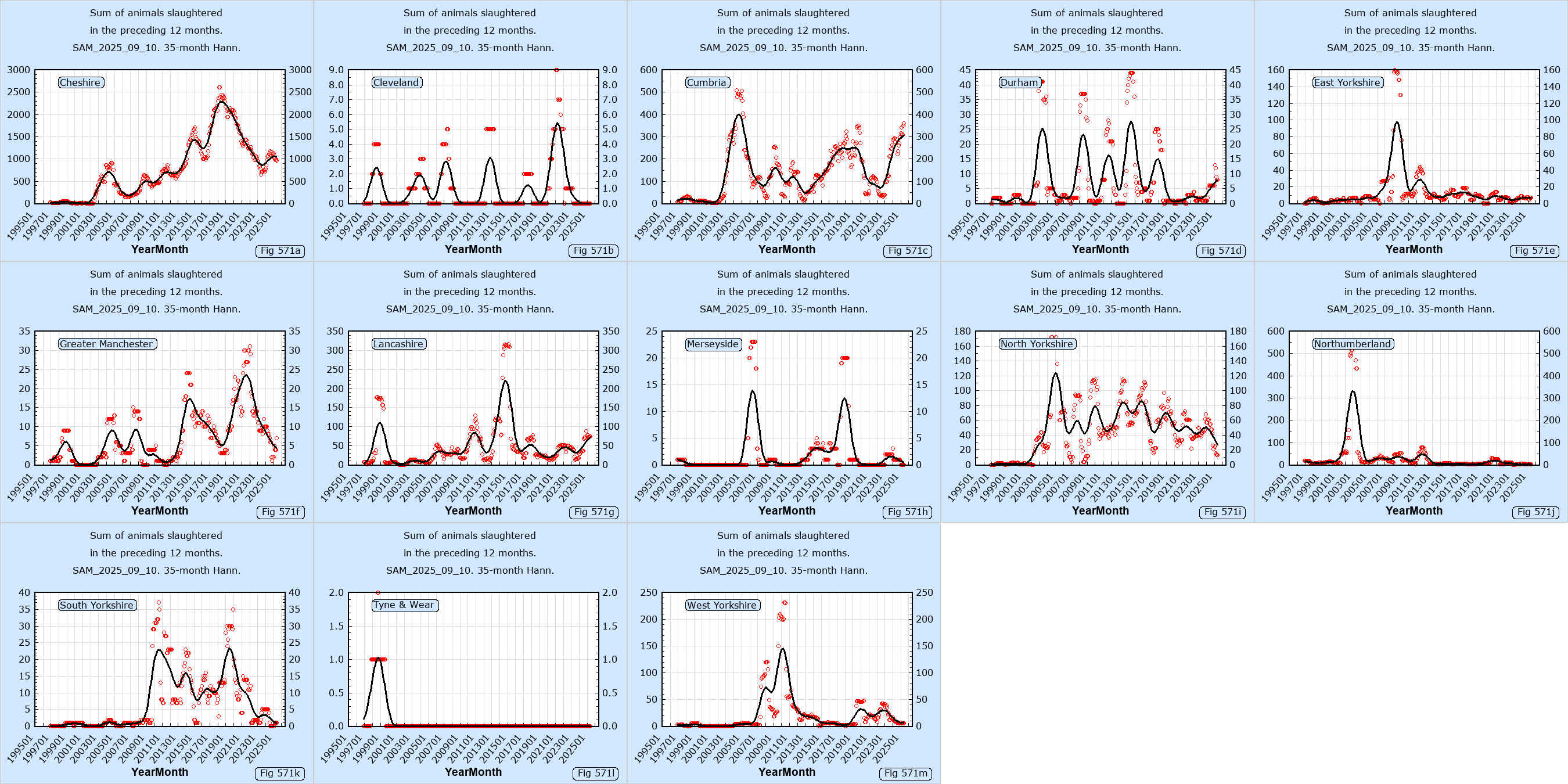 The following links show data downloaded from the DEFRA web site.Data sources: SAM_2025_09_10,SAM_2015_11_11,VETNET_2011_03_07