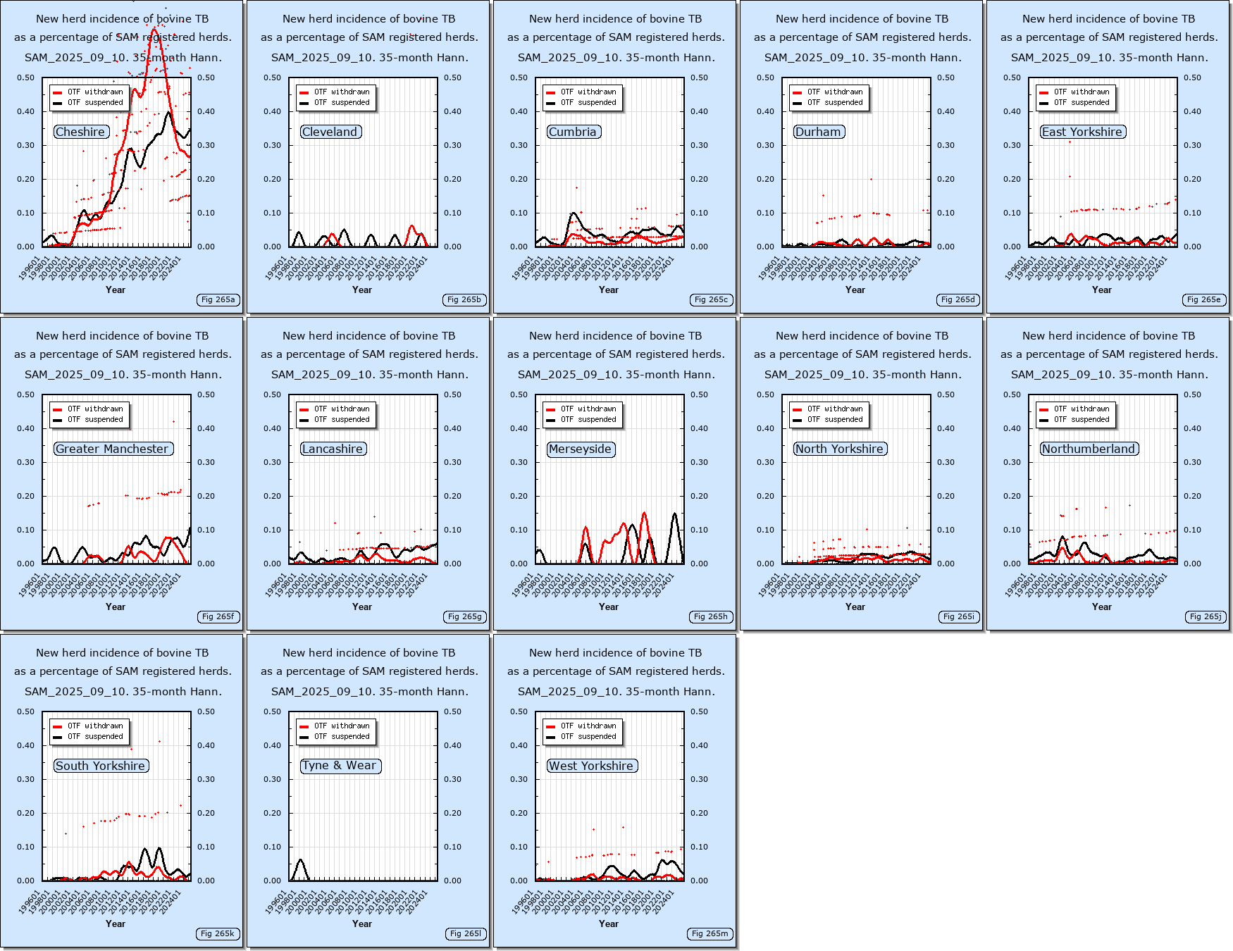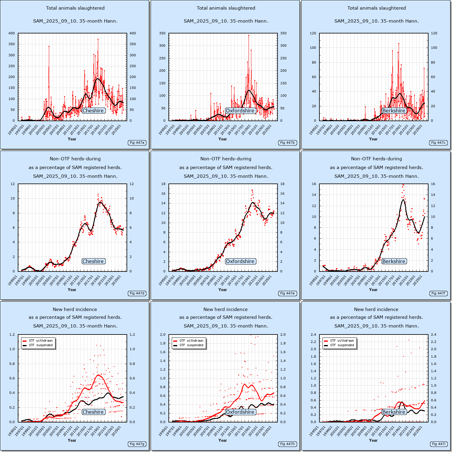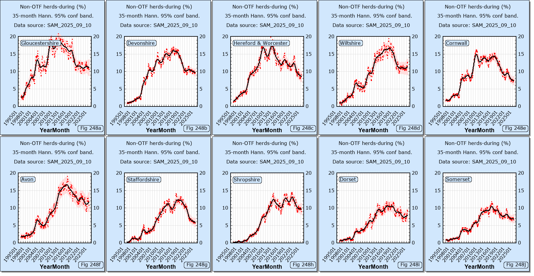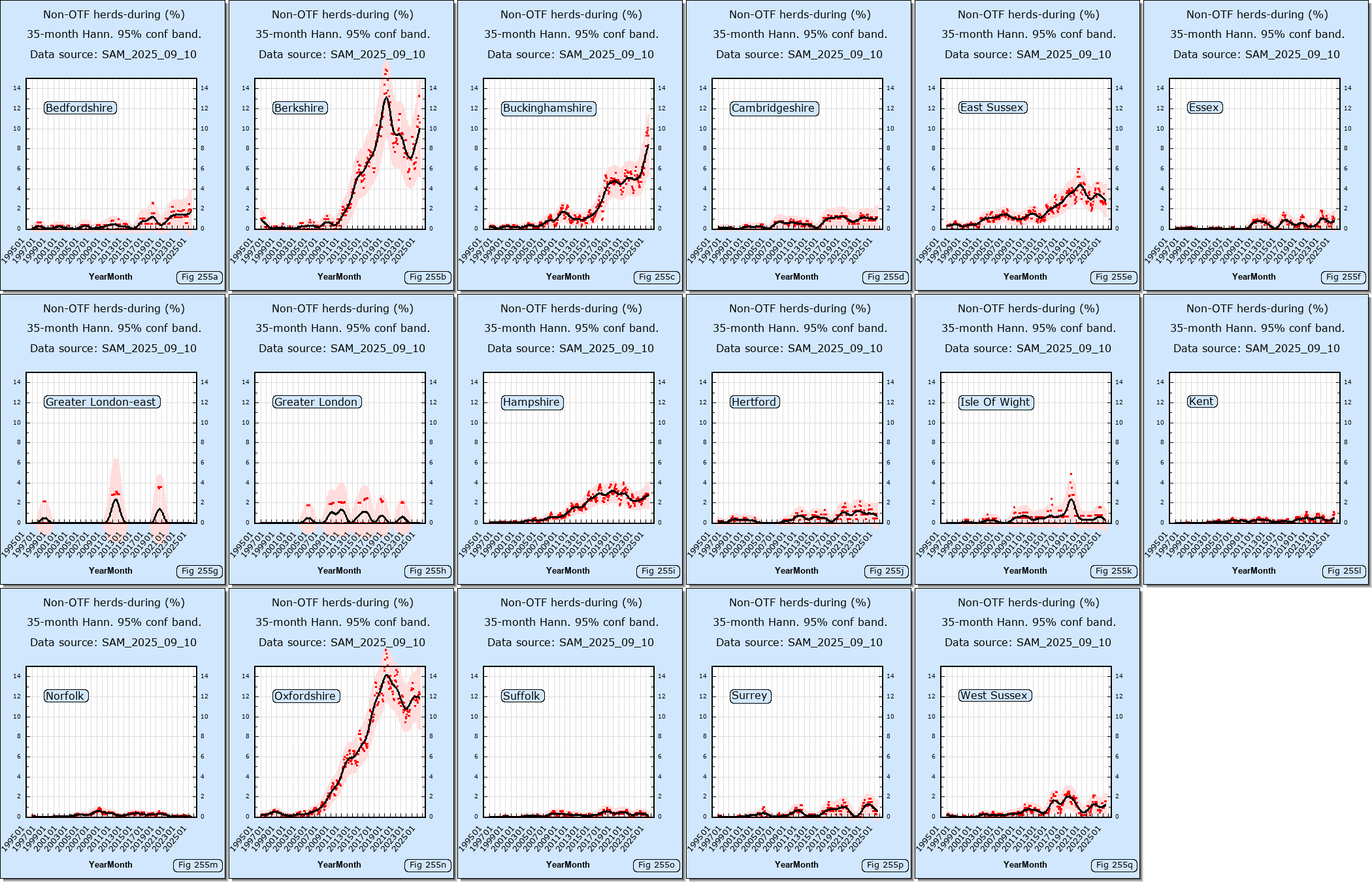 The following links show data downloaded from the DEFRA web site.Data sources: SAM_2025_09_10,SAM_2015_11_11,VETNET_2011_03_07