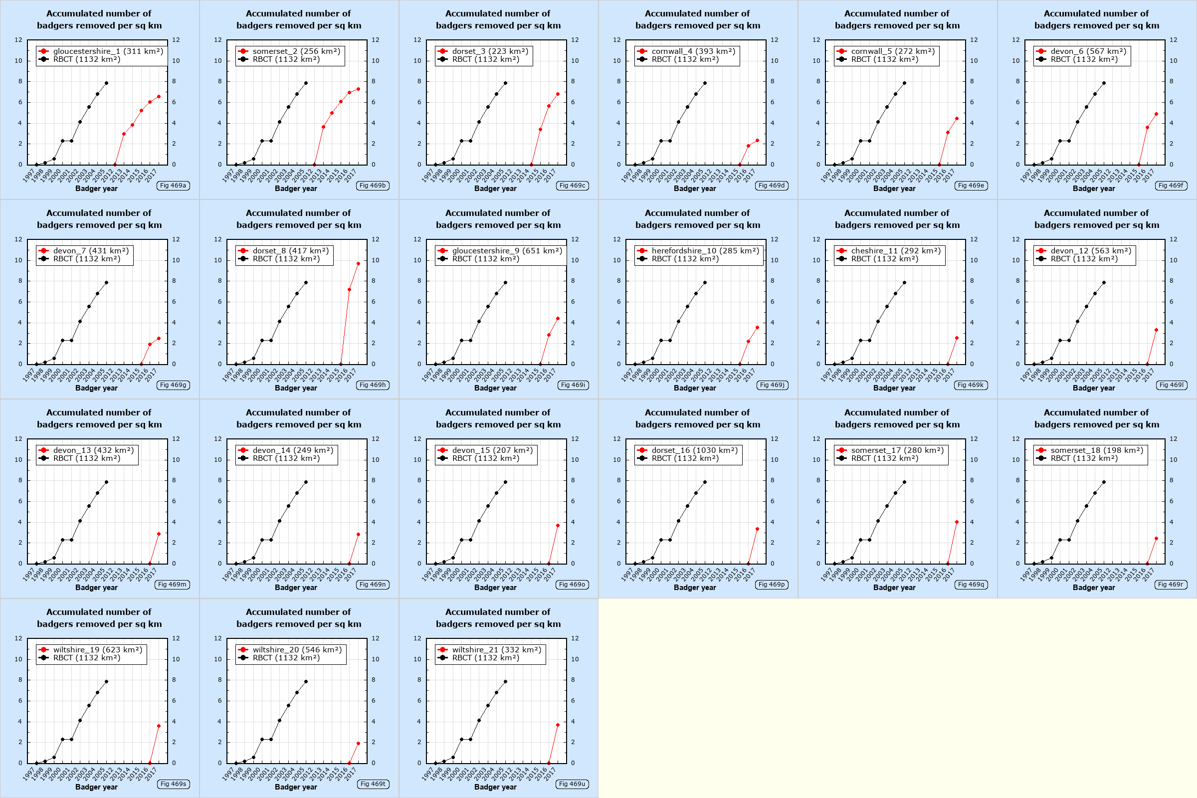 - Badgers removed / km2 in RBCT and exercises which started in 2013
