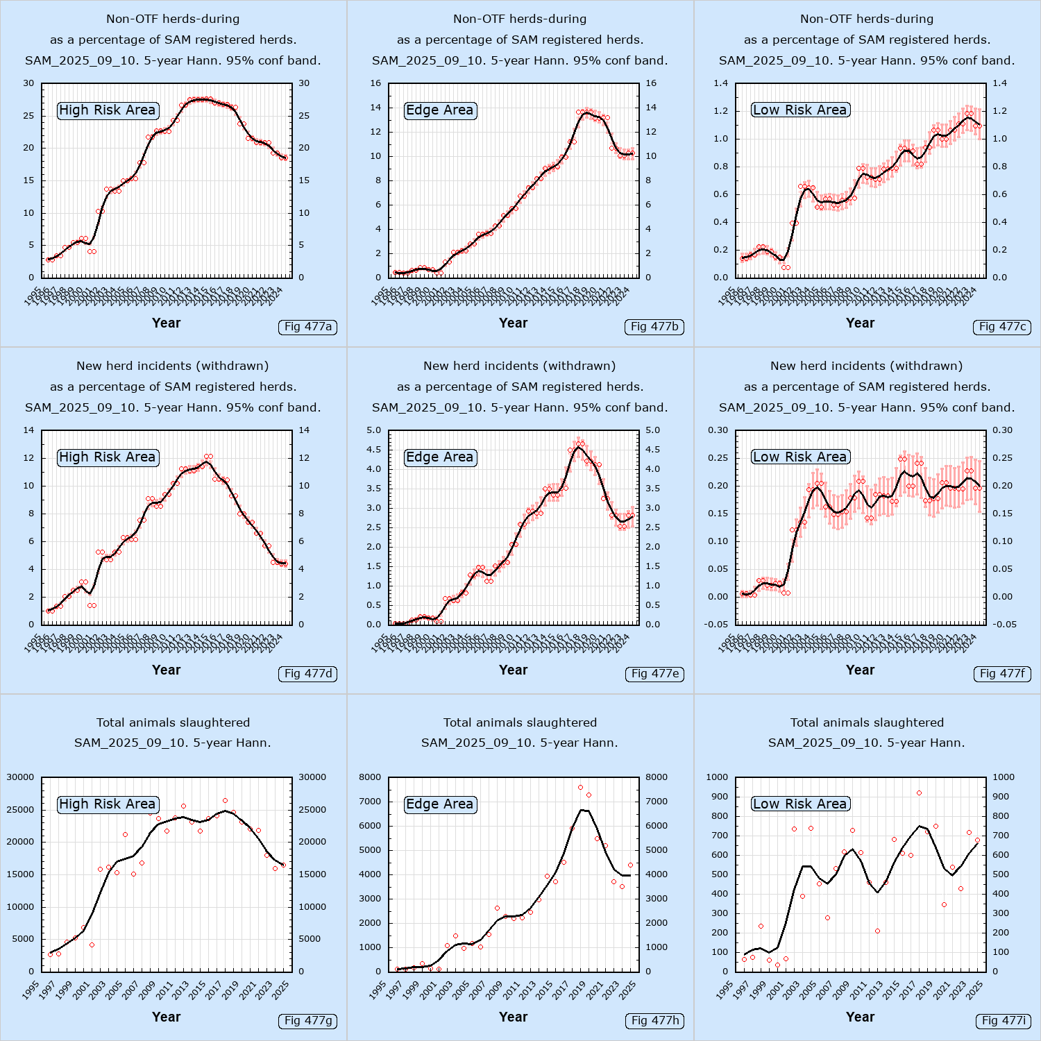Animals slaughtered, herds restricted & herd incidence for each of the following key areas.
