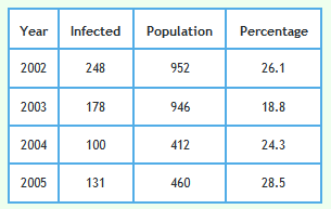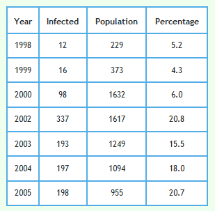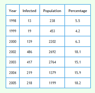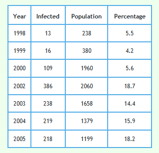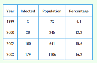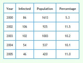 - the sudden 3-fold increase in detected infection between 2000 and 2002,