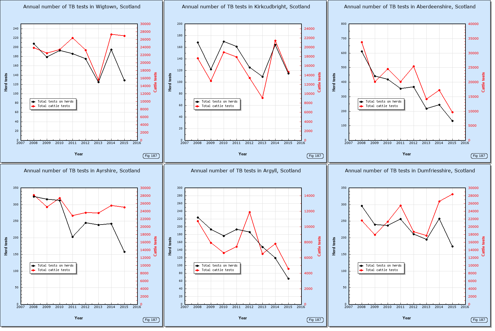 The following thumbnails show the number of TB tests performed in Wigtown since 2008. Click on them to see the graphs clearly.