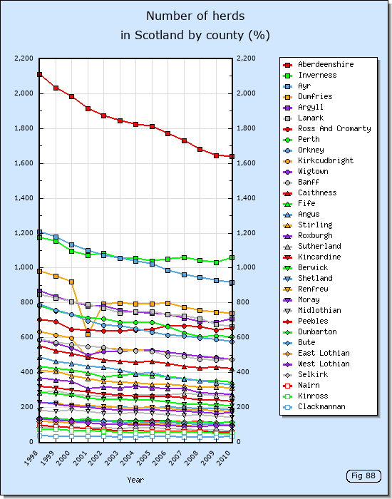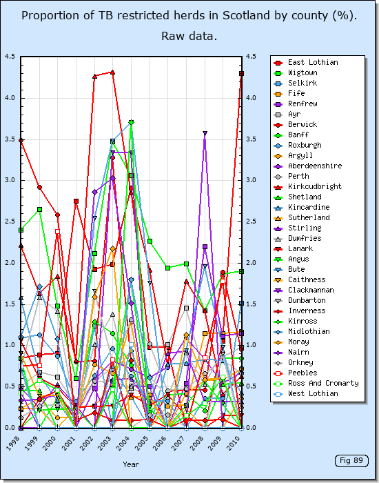 In the above graph the percentage of restricted herds was calculated by dividing the number of herds under TB movement restriction (non-OTF) by the total number of herds.