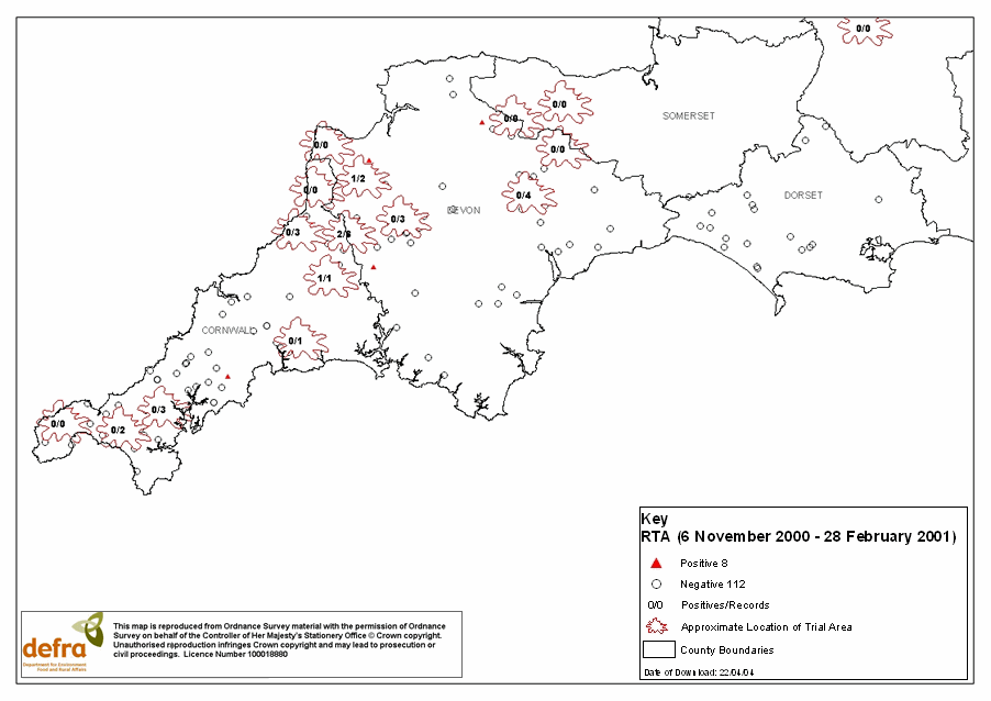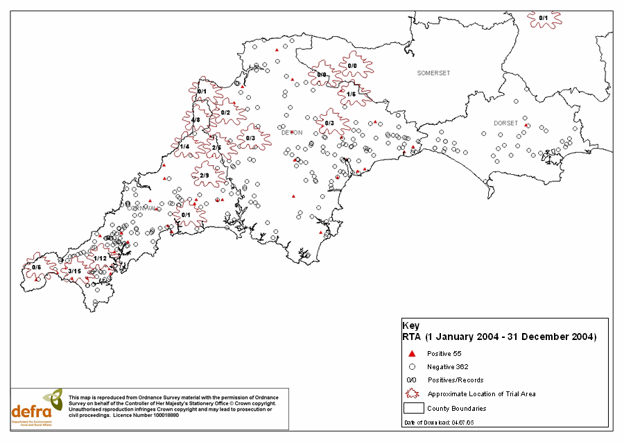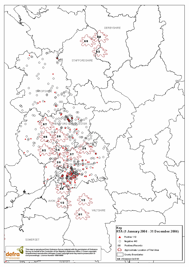 As can be seen in Reference 5 the test interval in much of Devon in the year 2000 was either 2 or 3 years. Also in Cumbria the test interval was 4 years throughout the county. Hence disclosure of the extent to which infection had increased due to restocking and movement of diseased cattle did not become fully apparent until 2004 in Cumbria. Although there was no relaxation of bovine TB restrictions to allow restocking as outlined in the DEFRA email shown in Reference 16, it was not until November 2004 that many cattle-based measures were introduced in England to tighten surveillance and reduce the risk of bovine TB spreading to new areas. In addition to this, as current in March 2012, most of Cumbria remains as 4-year testing parishes as can be seen in the map in Reference 17. Unlike Devon where TB incidence has continued to rise after 2004, in Cumbria levels started to recover to what they were before Foot and Mouth.