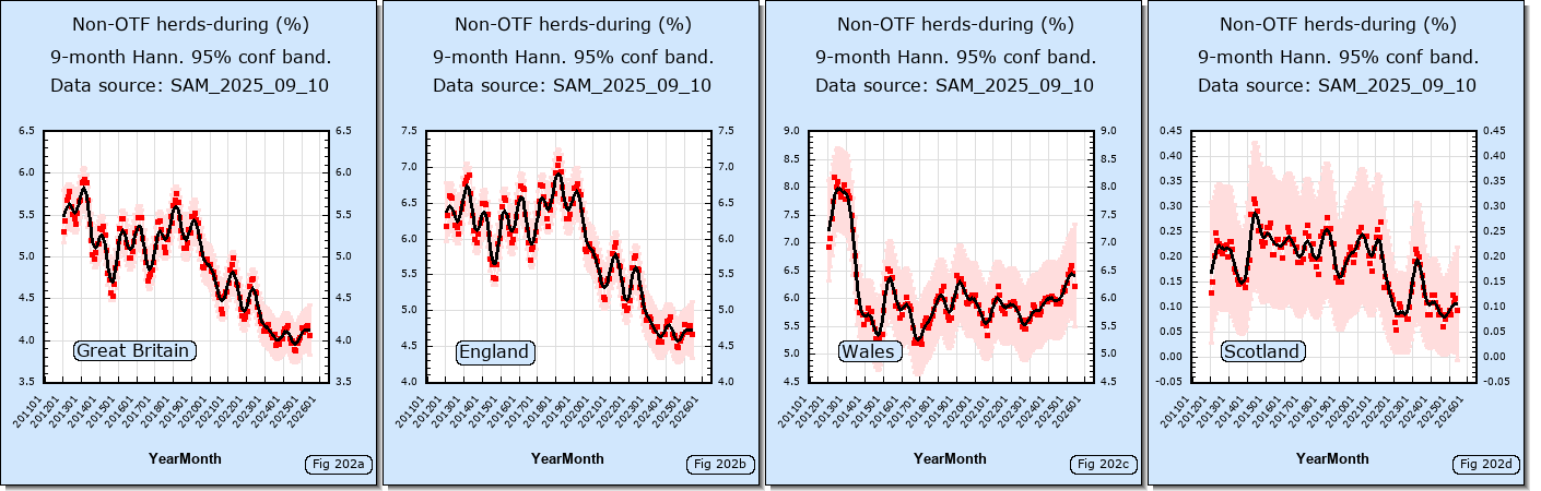 Fig 62 suggests that bovine TB levels in Gwent halved between 2008 and 2010 whereas levels in Powys remained about the same. Gwent and Powys are neighbouring counties.