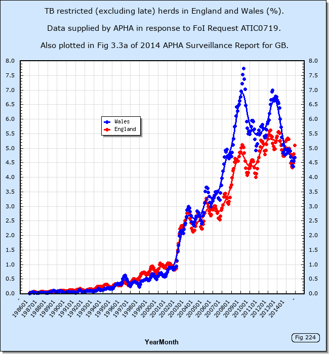 - Bovine TB Surveillance data from 1986 to 2014 in England, Wales And Scotland. Data supplied by APHA in response to FoI ATIC0719 in October 2015.